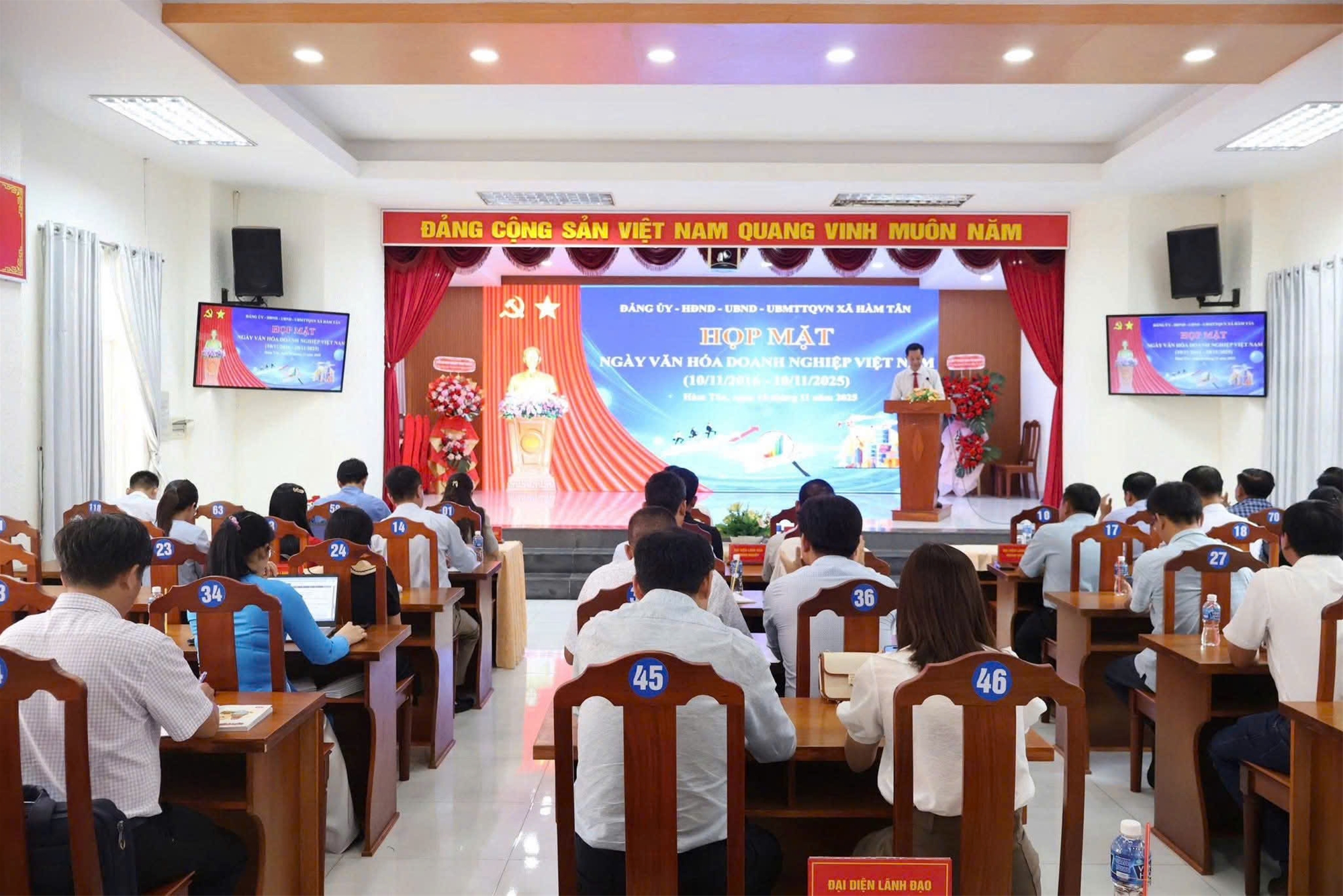 Sáng 10/11, UBND xã Hàm Tân tổ chức buổi họp mặt và đối thoại với các doanh nghiệp trên địa bàn, nhân Ngày Văn hoá Doanh nghiệp Việt Nam.