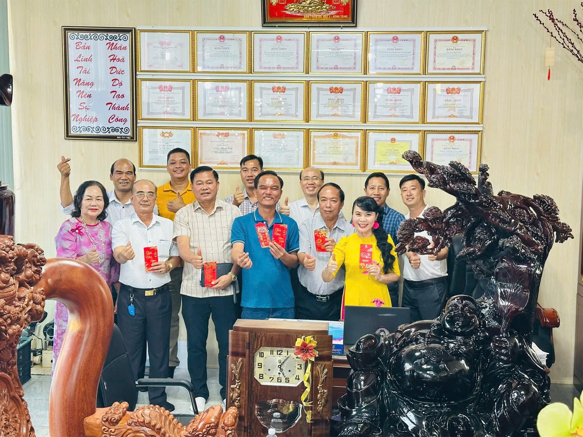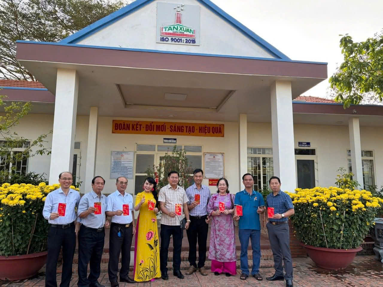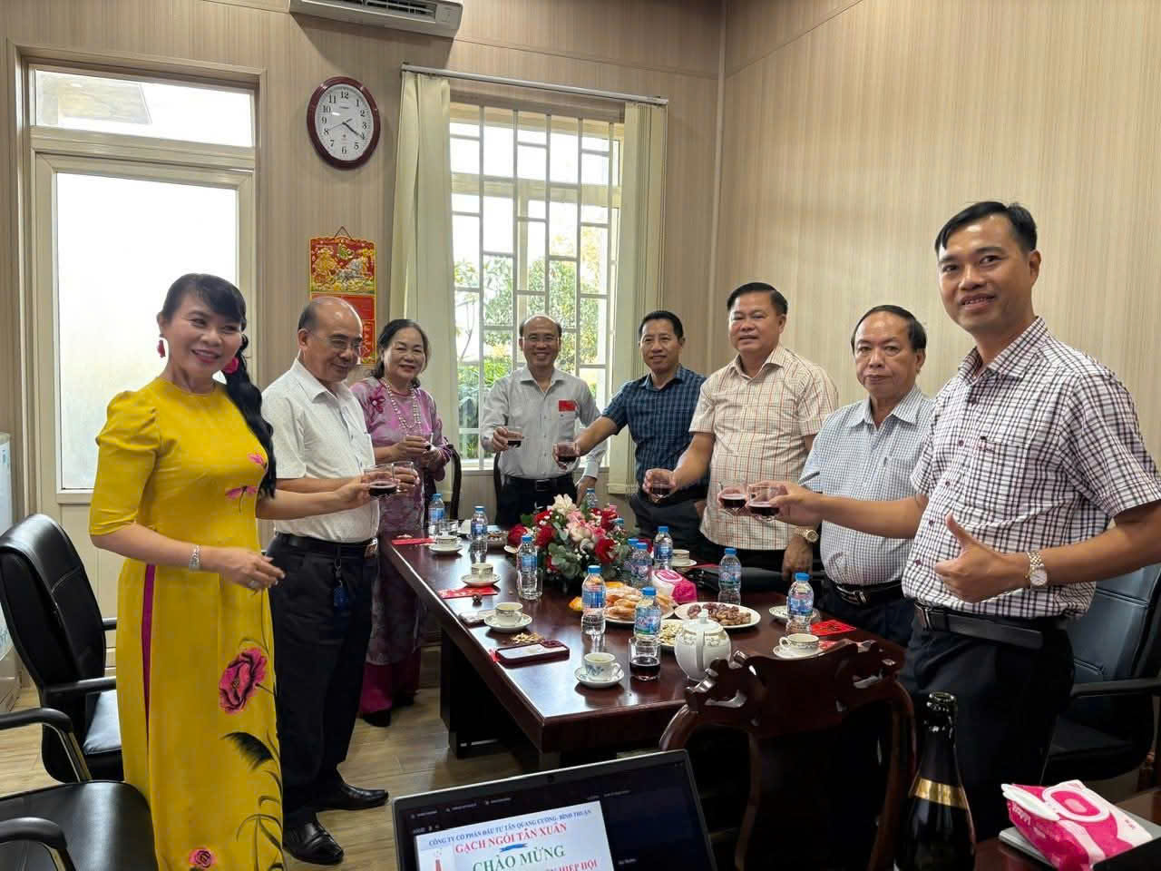 Tại Công ty CP Gạch ngói Tân Quang Cường, đoàn chúc mừng năm mới Ông Hoàng Văn Thái – Giám đốc Công ty, Phó Chủ tịch Hiệp hội Doanh nghiệp Bình Thuận. Với thương hiệu Gạch Ngói Tân Xuân đã được Cục Sở hữu trí tuệ cấp chứng nhận, doanh nghiệp tiếp tục khẳng định uy tín trong lĩnh vực vật liệu xây dựng.